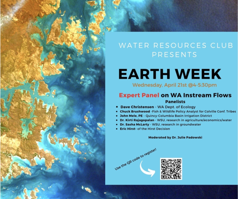 Happy Earth Week!! The student-led Water Resources Club is hosting a panel on the importance and impact of instream flows. Six expert panelists will join us to offer their insights on the state of WA’s rivers and streams and water resources. The panelists represent a diversity of knowledge, including from state, tribal, academic and public perspectives.